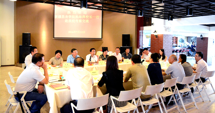 7月12日,新疆昌吉学院校长杨海萍,党委副书记管白楠率马克思主义学院、中文系、数学系、体育系、初等教育学院、美术系、发规处、对外合作办公室等部门负责人到beat365官网考察交流。