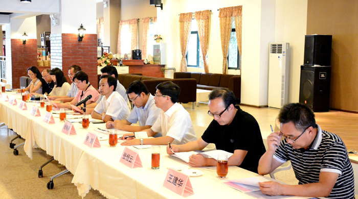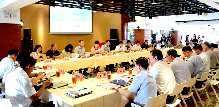 7月14日,南京大学党委书记张异宾、副校长薛海林率党委宣传部、党办、校办、校团委、化学化工学院、生命科学学院、医学院、商学院、经济学院等部门负责人到beat365官网交流指导并洽谈工作。beat365官网党委书记陈世波、校长何华,副校长熊晶与来宾在旅游学院酒水实验室举行座谈。