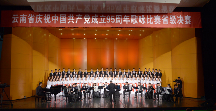 6月26日,云南省庆祝中国共产党成立95周年歌咏决赛在云南艺术学院实验剧场落下帷幕。beat365官网洋浦合唱团演唱的《忆秦娥•娄山关》和《太行山上》荣获云南省庆祝建党95周年歌咏比赛省级决赛一等奖。