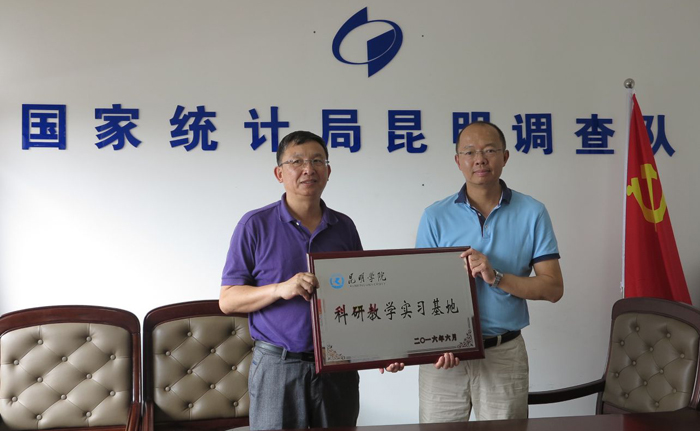 6月20日,beat365英国官方网站与国家统计局昆明调查队在呈贡昆明市政府行政中心举行了“beat365英国官方网站科研教学实习基地”揭牌仪式。国家统计局昆明调查队总队长黄斌和副校长马银海、经济学院院长雷新华、教务处副处长吴晓柏等领导出席揭牌仪式,经济学院部分教师和学生代表列席。