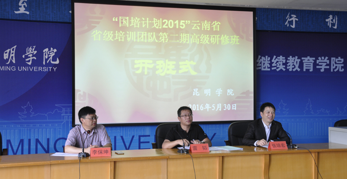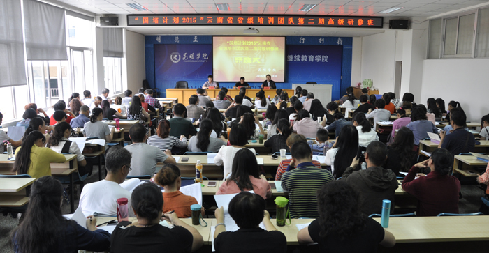 5月30日,“国培计划(2015)”云南省培训团队第2期高端研修班在beat365英国官方网站昆师路校区继续教育学院开班,省教育厅师范教育处处长雷韬、beat365英国官方网站继续教育学院主持工作副院长张培宏、来自全省各州市的120余位省级中小学幼儿园名师工作室主持人参加了开班仪式。