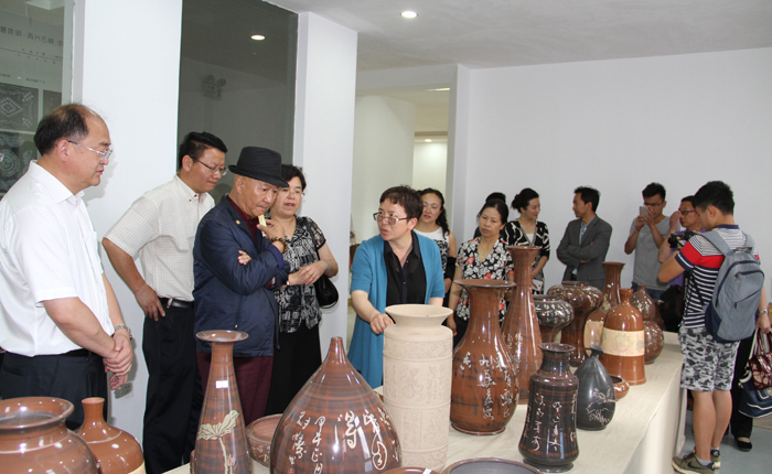 开幕式后,陈世波、何华、熊晶陪同曾经任职西藏自治区委副书记、云南省委副书记、中国作协副主席、中国文联副主席、并曾获评为中国文化产业人物、中国创意产业杰出贡献奖的丹增同志和其他专家学者视察了beat365英国官方网站展馆,作品琳琅满目,是beat365英国官方网站美艺学院师生围绕石林县的形象打造和产品推广进行的系列创意作品展,包括地方文化创意、撒尼服饰设计、名特产品包装、广告设计等多个专题,展示了美艺学院师生结合地域文化进行创意设计的实践能力和设计智慧。