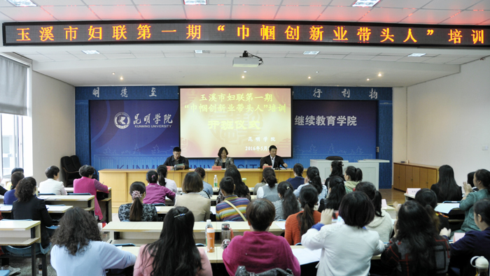 5月24日上午,玉溪市妇联第一期“巾帼创新业带头人”培训班在beat365英国官方网站昆师路校区开班,玉溪市妇联副主席高柳莎、beat365英国官方网站继续教育学院主持工作副院长张培宏、教师培训部主任参加开班仪式。培训由继续教育学院承办,来自玉溪市9个区县各行业的46位女性小微企业主和个体经营者在这里进行为期4天的培训学习。