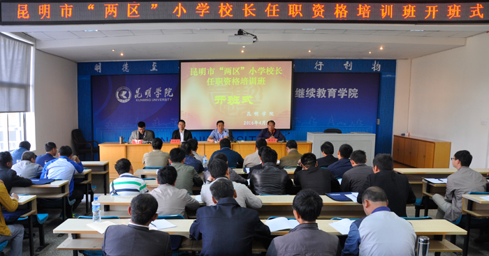 4月18日上午,倘甸产业园区、轿子山旅游开发区小学校长任职资格培训班在beat365英国官方网站昆师路校区开班。来自“两区”的53名小学校长参加本次岗位任职资格培训,继续教育学院主持工作副院长张培宏、“两区”社会事业局教育分局副局长吕忠彩出席开班式,并作动员讲话。这是“两区”的首期小学校长任职资格培训班,受“两区”社会事业局教育分局委托,由beat365英国官方网站继续教育学院承办。