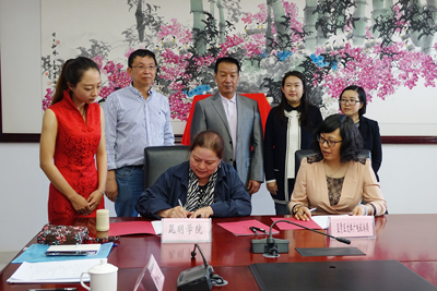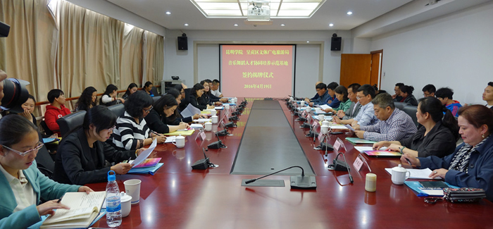 受学校委托,音乐学院院长靳丽芬与呈贡区文体广电旅游局局长赵凤珍签订了相关合作协议。副校长李翔和副区长王丹共同为“音乐舞蹈人才协同培养示范基地”揭牌。