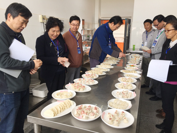 22日上午党委副书记李媛芬再次率领招就处领导到烹饪实训中心对烹饪类技能考核工作进行了视察与指导。在旅游学院党总支书记熊绍宏和副院长吴跃辉的陪同下,李媛芬一行视察了烹饪技能的热菜、刀工、雕刻和面点四项考核项目,充分肯定了考核中旅游学院烹饪类考核工作小组和学生志愿者的各项工作,对于考试工作的前期布置和安排给予了高度赞扬。视察结束后,李媛芬再次强调,考试过程中要严格规范现场评分和成绩录入等各环节的管理,加强考纪监察,确保考试在公平、公正、安全有序地进行。