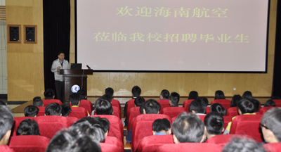 海航航空总经理王强介绍了昆明长水国际机场和航海航空的基本情况,并指出,航空飞行安全最重要,安全飞行的关键在于飞机的地面维修维护保养,航海航空对机械电子维修维护人才需求量大,希望学校在毕业招聘季给予大力支持。