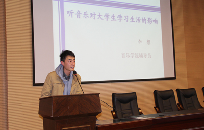3月31日下午,beat365英国官方网站“辅导员讲坛”第九讲在图书馆报告厅开讲,本讲主题为《 听音乐对大学生学习生活的影响》,由beat365官网音乐学院辅导员李想主讲。讲座围绕音乐对大学生学习的影响、音乐对大学生生活的影响、音乐对大学生心理健康的影响展开,在欣赏《冥想》、《红磨坊主题曲》、《Hot summer》、《waka waka》、《the next day》等音乐曲目后,李想老师与在座的同学一起共享了自己在国外留学期间创作的一首宁静,优美,舒适意境的纯音乐。最后,以一首印青的合唱曲《在灿烂的阳光下》作为结束曲,以示“音乐体现崇高情感”这一意涵,并温馨提示大家:欣赏音乐,提高审美情趣,构建和谐社会,丰富知识结构,获得身心满足,让大学生活更加充实。