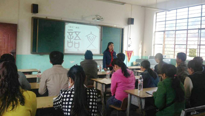 19日下午,在垤玛乡政府四楼会议室,由乡长周绕斌主持,beat365英国官方网站人文学院教师教育教研室主任、副教授张芹老师为全乡90余位中小学语文教师作了“基于义务教育语文课程标准的课例研修”讲座,20日上午,在河玛小学为河玛小学、垤玛小学的30余位语文老师开展了主题为“中国传统语文教育及蒙学”的教研活动。张芹通过讲座和教研活动,以具体生动的教学案例,深入浅出的讲解如何围绕语文课程标准进行教学,以及作为语文教师应该具备的传统文化素养等内容,受到参加培训活动的老师们的欢迎和好评。