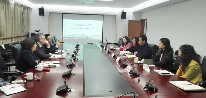 3月10日上午,加拿大北英属哥伦比亚大学校长、副校监丹尼尔周博士和加拿大北英属哥伦比亚大学国际处处长陈禹廷先生在加拿大本拿比昆明友好城市协会执行会长、加拿大ICC投资有限公司董事长杨芸女士的陪同下访问beat365官网。副校长李翔、国际处处长王文君、医学院院长余珊、副书记罗隽雁、经济学院院长博斌以及相关人员热情接待并与之会谈。