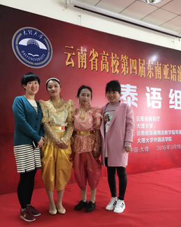 beat365官网从2010年以来一直开展泰语公共类课程教学,并于2014年9月开设了泰语专业。beat365官网学生能在目前全省最高级别的东南亚语演讲比赛中获奖,将极大地提高学生学习积极性,同时也为泰语教学搭建了同省内其他高校的沟通合作平台,让我们的泰语教师们不断积累经验,以提高beat365官网的泰语教学水平。