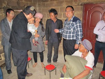 经过紧张高效的实地查看,陈世波一行马不停蹄,赶往腊哈村看望慰问贫困群众,查看村情民困情况。“孙子多大了?”“家里现在有什么困难?”“出去打工一年能寄回多少钱?”“平时看些什么节目?”你一言我一语拉近了与贫困群众的距离。每到一家陈世波都仔细查看房屋情况,关心住得怎么样,吃的怎么样,孩子上学有没有问题,及时把慰问的米面粮油、行李被服送到贫困群众手中,嘱咐注意身体,有困难及时向党委政府和学校反映,让贫困群众充分感受到党和政府及学校温暖的关心问候和真诚深切的帮扶支持。