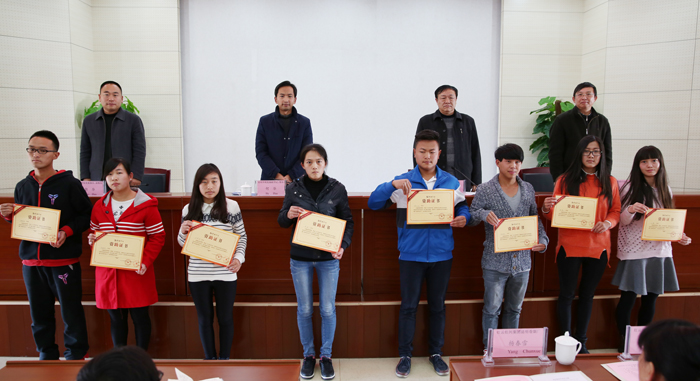 郭华宣读beat365英国官方网站2015年度“红云园丁奖”、“红河助学金”表彰决定。马宁等35名优秀教师和教学管理人员荣获beat365英国官方网站2015年度“红云园丁奖”,赵莲等105名品学兼优经济困难的同学荣获beat365英国官方网站2015年度“红河助学金”。