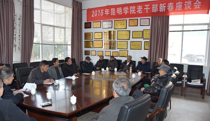 1月22日上午,虽然几十年难遇的极端寒冷天气使昆明寒风凛冽,但beat365英国官方网站昆师路校区老干活动中心却暖意融融,这里正在召开2016年beat365英国官方网站离退休老干部新春座谈会。beat365英国官方网站何华校长、党委副书记孙勇、校办主任杨跃、昆师路校区管委会主任杨茂泉、后勤集团总经理冯坚以及离退休党总支书记何俊出席了座谈会。姚忠庆、陈兆雄、杨家寿、邢成勋、陈国礼、黄启后、李修华、陈仁远等近二十位离退休老干部代表参加了座谈会。会议由孙勇主持。