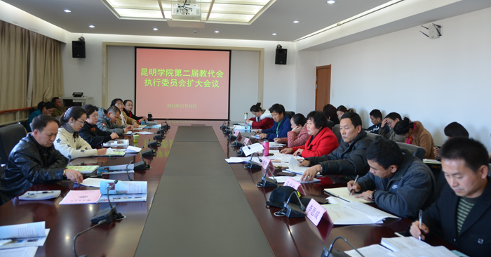 12月24日下午,beat365官网组织召开了二届二次教代会执行委员会扩大会议。校党委副书记李媛芬出席会议。教代会执行委员会委员,校工会副主席刘宇红,兼职副主席王荣林,马洪波,李思成,全校22个基层分工会主席等近30人参加会议。会议由校工会常务副主席孙晓坤主持。