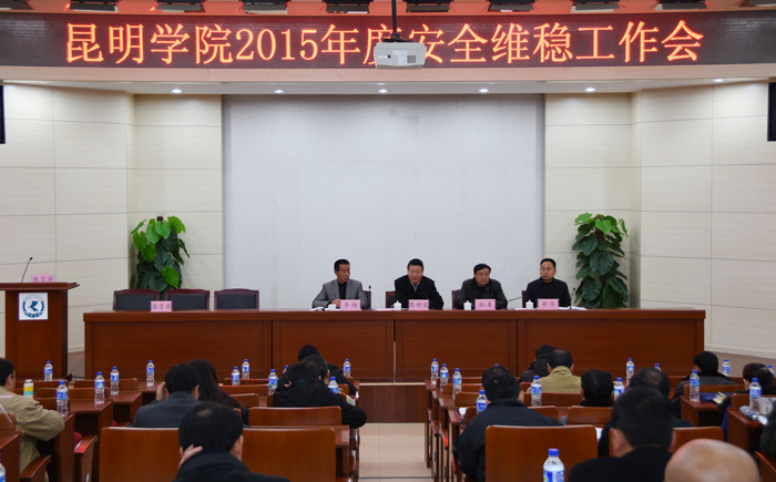 为总结学校2015年安全维稳工作,表彰2015年度综治维稳平安建设先进单位,部署2016年安全维稳工作,12月29日下午,学校在办公楼D区三楼报告厅召开2015年度安全维稳工作会,党委书记陈世波、副书记孙勇、副校长李翔、副校长郭华出席会议,教学院系党政负责人及分管学生工作副书记、辅导员,思政部党政负责人,各单位主要负责人及保卫处副科以上干部共100余人参加会议。会议由郭华主持。