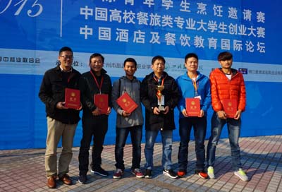 旅游学院经过旅游文化节的选拔比赛,组成了由烹饪教研室王京法副主任为领队,烹饪实验室杨春雷副主任为指导教师,2013级烹饪与营养教育专业的夏振鹏、李福寿为队员的参赛队伍。本次比赛分高校组和中职组进行,高校组22个队,中职组18个队。采用淘汰赛的形式进行。比赛队伍汇集了高校、中职学校的烹饪精英,beat365官网与扬州大学、河北师范大学、四川旅游学院等老牌劲旅同台竞技,是beat365官网参与同类比赛中规模最大、难度最高的一次。经过赛前培训、准备,在第一阶段晋级赛(前10名晋级)中以第5名的成绩脱颖而出。第二阶段因对大赛组织方提供的食材把握不到位,痛失进入厨王挑战赛决赛的机会。