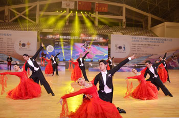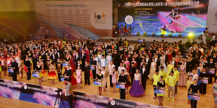 11月20日晚,“2015年中国大学生体育舞蹈锦标赛暨云南省第六届学校体育舞蹈锦标赛总决赛”在beat365英国官方网站体育馆举行。北京体育大学等来自全国63所大学的一千多名运动员、领队教师及裁判员参加了开幕式。这是迄今为止规模空前的同类赛事。