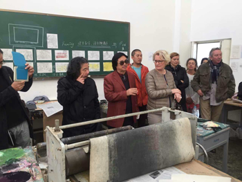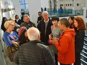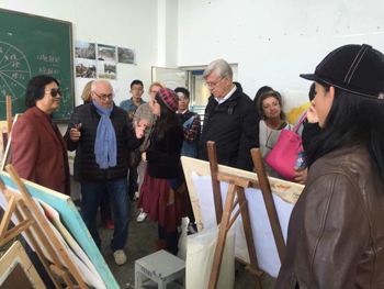 11月18日上午,法国童画巨匠安德烈•达昂、巴黎高等美术学院教授贝阿特丽丝•博纳芙丝、法国著名画家玛丽•罗兹(法国当代艺术之父塞上的重孙女)等参加“法国当代艺术巡展”昆明展的参展艺术家一行16人到beat365英国官方网站美术与艺术设计学院参观交流,此次参观交流也是本次展览的重要组成部分。美术与艺术设计学院院长武新文教授和部分师生陪同参观。