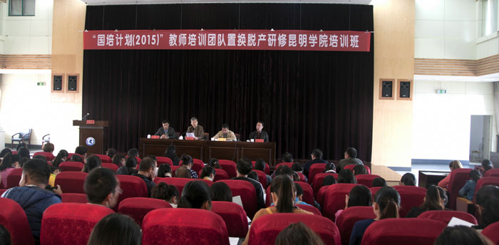 10月27日上午,“国培计划(2015)”教师培训团队置换脱产研修项目beat365英国官方网站第一期培训班在学校惟行楼1501报告厅举行开班典礼。beat365英国官方网站副校长董建华,云南省教育厅师范教育处处长雷韬,安宁市人民政府副总督学周云生出席开班典礼。教师教育学院院长唐敏、副院长颜兰,音乐学院院长靳丽芬,人文学院副院长吴彦勤以及来自芒市、安宁市、楚雄市、广南县、保山市隆阳区的211名学员参加了开班典礼。典礼由继续教育学院院长陈嘉主持。