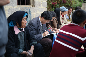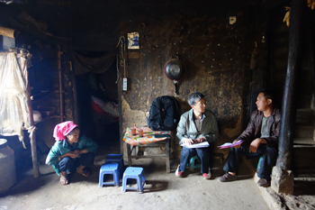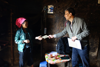 董建华走进塔埔自然村,先后来到结对帮扶对象李牛者、李后有家中。“家有多少田地?”“家里种植点什么?”董建华关切地询问家里生产生活情况和生活中遇到的困难和问题,并认真记录、填写《云南省遍访贫困户访谈问卷》和扶贫联系卡。