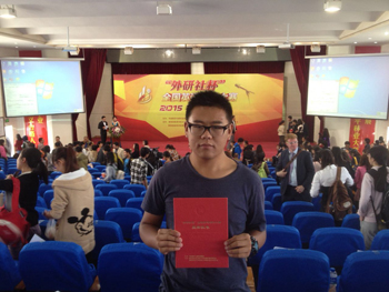 beat365官网社会管理学院2013级人力资源管理专业学生廖康总成绩位列写作大赛第一名,获得云南省特等奖。廖康同学将代表云南省参加12月份在北京举行的全国总决赛。这是beat365官网学生在“外研社杯”全国英语竞赛中取得的最好成绩。