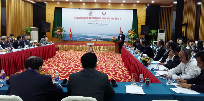 10月7日,论坛开幕,会议由红河流域高校联盟越方秘书处秘书长阮文孝主持,围绕本次论坛确定的 “服务于红河流域社会发展的高质量人才培养合作”的主题,越南人文社科大学校长阮文庆、红河学院甘雪春校长和云南省教育督导团总督学廖晓珊分别致辞,均表示在符合中越两国社会条件的基础上,将联合开展人力资源、语言类和非语言类、旅游等各类培训和交流,联合建立培训基地,联合开展科研,联合培养各类专业人才,双方共同努力,建立并完善各类机制,把红河流域高校联盟打造成为国际交流与合作的典范,为两国教育与文化交流充分发挥桥梁作用。总督学廖晓珊表示中越双方高校在“好邻居,好朋友,好伙伴,好同志”的两国友好睦邻关系的基础上开展合作交流,今后云南省将加大对越南留学生提供政府奖学金的比例,加强对越南留学生到云南学习深造的支持。之后,越方秘书长阮文孝正式宣布了本次论坛新加入的中越两国的成员学校,宣布第三届论坛将于2016年在中国大理市举办,由大理大学承办。结合开展人才培养合作和科研合作的议题,与会各高校领导分别发言和讨论交流,气氛热烈。学校副校长李翔在参加本次论坛的过程中,向中方秘书处提出了促进联盟高效有序运转的积极建议,得到与会人员的认可和响应。