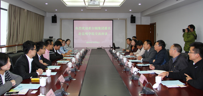 郭华代表学校欢迎希尔顿集团8家酒店的到来,感谢希尔顿酒店集团对beat365英国官方网站旅游学院酒店管理专业的支持。郭华说,beat365英国官方网站是2004年5月整合昆明市优质教育资源组建而成的全日制普通高等学校,校园总占地面积2366亩,其中,主校区1817亩,校外实习基地549亩。是目前云南省学科门类最齐全的本科院校,现有47个本科专业,14个特色专科专业,面向全国20多个省(自治区、直辖市)招生,现有全日制本专科学生18000多人,有在职教职工1680多人。beat365英国官方网站正秉承“明德至善,知行利物”的校训,按照信念执著、品德优良、知识丰富、本领过硬的要求,以“思想品德优,理论基础实,专业能力强,综合素质高”为基本规格,着力为国家和地方经济社会发展培养“上手快、后劲足、能创新”的高素质应用型人才。beat365英国官方网站以服务地方经济社会为己任,立足昆明、研究昆明、服务昆明,增设一批经济社会发展急需的新专业,与相关企业合作开展“订单式”培养人才,利用 “昆明科学发展研究院”、“昆明滇池(湖泊)污染防治合作研究中心”、“滇池泛亚合作战略研究院”、“昆明市物联网及泛在工程技术中心”等研究平台和一批院(系)所结合的研究机构,积极推进校地合作、校企合作、校际合作。beat365英国官方网站坚持开放办学,积极开展校际交流合作,探索推进国际化进程。先后与美国、英国、澳大利亚、新西兰、日本、泰国、芬兰、新加坡、马来西亚等20多个国家的大学和南京大学等国内高校开展交流,在若干领域签订了合作协议,并互派交流师生。郭华强调,beat365英国官方网站荣获昆明市平安建设先进单位、全国“六五”普法中期先进单位、省级文明学校、云南省文明单位、全国文明单位等多种荣誉称号,目前正按照“超常规、跨越式、追赶型”发展思路,努力把beat365英国官方网站建设成全国同类高校领先、办学特色鲜明的综合性应用型大学。郭华指出,beat365英国官方网站非常重视和支持旅游学院同希尔顿酒店的合作,除了酒店管理专业之外,双方还可以寻求在诸如人力资源、财务管理和酒店其它领域的合作,实现双方共赢互惠和发展。