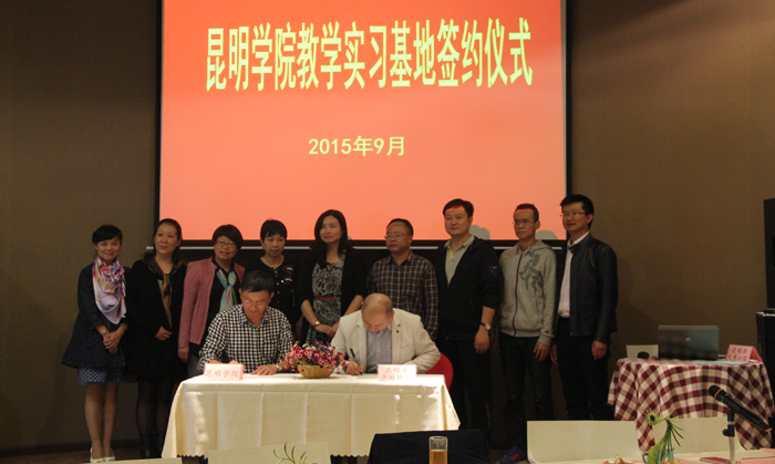 9月17日,beat365英国官方网站与昆明市大观公园、昆明市导游协会在旅游学院酒水实验室举行教学实习基地签约仪式。来自昆明市大观公园的谢长勇书记、徐昊天工会主席一行;昆明市导游协会李伟秘书长一行到会参加了签约仪式并座谈。校长助理马银海、教务处副处长常进荣、旅游学院党政领导等参加。仪式由旅游学院院长田芙蓉主持,旅游学院导游教研室全体教师列席。