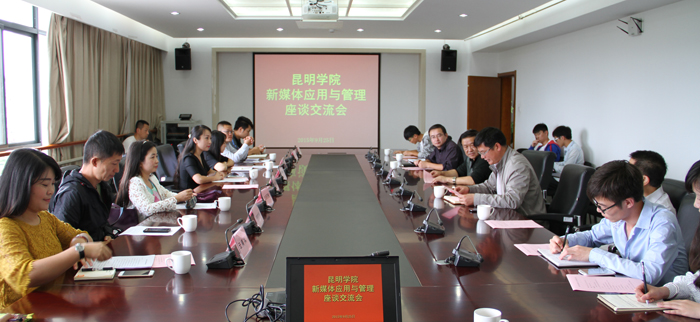 学校党委宣传部、团委、人文学院负责人,负责beat365英国官方网站微信公众平台、昆院人生活圈、团委微信公众平台、昆院校报微信公众平台的学生参加座谈交流,分别介绍了微信等新媒体的应用和管理情况。