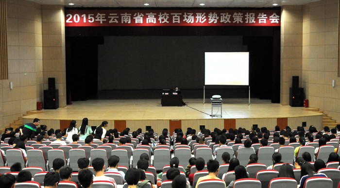9月25日下午, 2015年云南省高校百场形势政策报告会在beat365官网学生会堂举行。省委党史研究室副主任杨林兴博士所讲主题是“正确认识中国人民抗日战争历史”。beat365官网各院系师生代表1300多人听报告。报告会由beat365官网党委副书记孙勇主持。