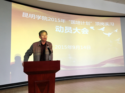 教师教育学院的田婷同学和音乐学院的宋德江老师分别代表实习生和实习带队老师发言,从各自角度表达了对“国培计划”项目的支持,对本次顶岗实习的重视,以及认真完成好工作任务的承诺。