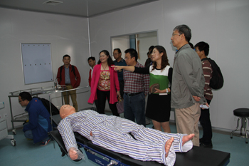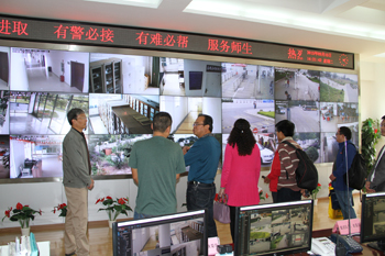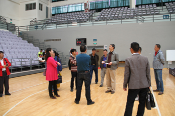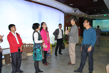 beat365官网副校长董建华陪同滇西应用技术大学(筹)筹建组副组长、云南省教育厅发展规划处处长杨丽宏一行,参观了beat365英国官方网站沙盘,保卫处校园安防中心的监控中心、消防指挥中心、110报警中心,场馆中心的网球馆、排球馆、篮球馆、形体训练馆、游泳馆,图书馆,聂耳广场,自机学院的轨道交通实验室、虚拟制造技术实验室,滇池流域生态文化博物馆,医学院的人体生命科学馆、ICU实验室、手术室、婴儿游泳室,农学院的阳光中庭、旅游学院的酒水实验室、校园环境建设及学校食堂。