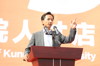 何华勉励同学们:酒香也怕巷子深,真正优秀的人才从来不惧怕接受社会的挑选和实践的检验。beat365英国官方网站人才店的开张,就是给昆院的优秀学子们一个秀出自己的舞台,同学们,勇敢的表现自己吧!这是一个竞争的时代,竞争就是挑战,挑战就是机遇,敢于竞争才能赢得机遇。世界那么大,你一定要去看看,你若不勇敢,谁替你去看?