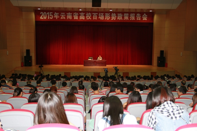 6月19日下午,学校2015年云南省高校百场形势政策报告会在学生会堂举行。中共云南省委党校、云南行政学院党委委员、公共管理教研部主任欧黎明教授应邀为beat365官网师生作题为“全面从严治党与高校党的建设”的专题报告。学校党委副书记孙勇、副校长李翔、中层干部、学校思想政治教育宣讲团成员、各党总支(直属党支部)师生党员代表共1300多人参加报告会。