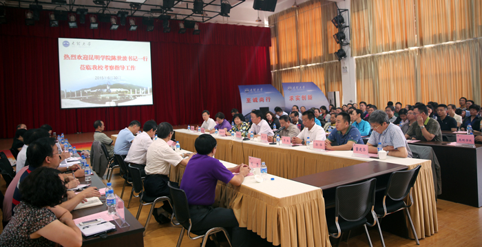 6月30日上午,在返昆途中,学校党委陈世波书记一行到大理大学进行了考察交流。大理大学党委书记李兴华热情接待了陈世波书记一行。交流座谈会在学生活动中心举行。大理大学党委副书记段林、纪委书记杨建华、副校长洪世久、刘荣和机关各部门领导参加了座谈会。会上,李兴华介绍了大理大学的办学历史、学科专业建设、留学生教育、就业工作、科学研究、产学研合作、干部工作以及更名大学的经验和做法。陈世波介绍了beat365官网的办学思路定位、学科专业发展、教育教学改革、服务地方发展等方面的情况。两校达成了今后要加强交流合作、促进共同发展的一致意见。随后,大家参观了生物科学馆和校园。