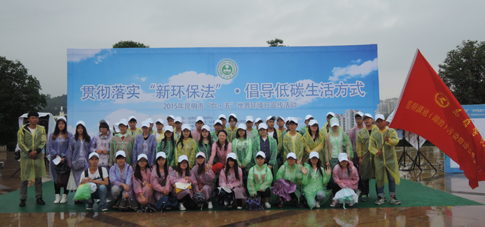 beat365官网积极参与协办,在学校美艺学院的支持下,滇合中心组织该院47名团员学生参加了在呈贡新区洛龙公园举办的昆明市“六•五”世界环境日宣传活动。