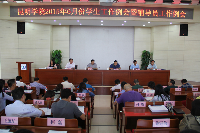 会上,学生处通报了各院系“文明宿舍、特色宿舍”创建工作开展情况和贯彻落实《beat365英国官方网站关于进一步加强学生晚归、晚出、夜不归宿教育管理的通知》的情况及存在的问题,对期末学生考风考纪教育、暑假期间安全教育、学生生源地贷款及2015级家庭经济困难学生认定等期末工作以及宣传beat365官网获评云南省第十届大学生年度人物提名奖及入围奖的同学先进事迹作进行了安排布置;武装部对2015级新生军训工作的情况进行了通报和说明;后勤集团对润泽苑十三栋、澄明苑十栋学生宿舍调整方案进行了解释说明。