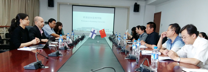 6月12日上午,在昆明市外侨办友好城市协会副会长汪浩先生和芮凌女士陪同下,芬兰于韦斯屈莱应用科技大学全球教育服务主任Timo Juntenen先生及项目协调人何翔女士访问beat365官网,学校副校长李翔热情接待并与之会谈,国际交流合作处处长王文君及相关教师、医学院副院长杨兆宇、医学院党总支副书记罗隽燕及相关教师参加会谈。
