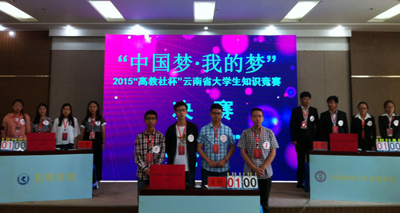 由中共云南省委高校工委、云南省教育厅主办的2015第五届云南省高校文化节活动之“高教社杯”云南省大学生知识竞赛总决赛于5月29日在西南林业大学举行。经必答、抢答、风险三个环节的现场比赛角逐,由化科系杨艳梅、数学系舒泽苹、郭惠莹、董红梅四位同学组成的beat365官网参赛队在进入总决赛的10所高校中荣获大赛三等奖。