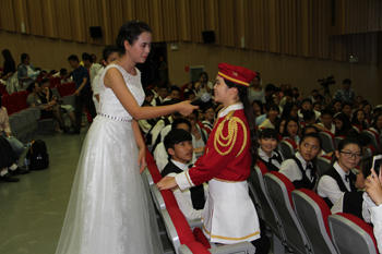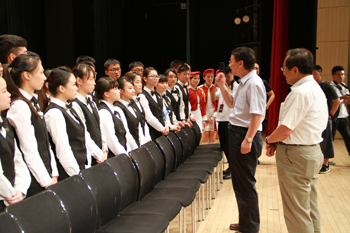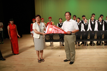 演出结束后,beat365英国官方网站与台湾忠信学校互赠纪念礼物。与会领导和台湾忠信学校学生演员一一握手致意,陈世波发表简短讲话,热烈欢迎同学们的到来,非常感谢同学们精彩的演出,希望双方经常来往,加强交流。