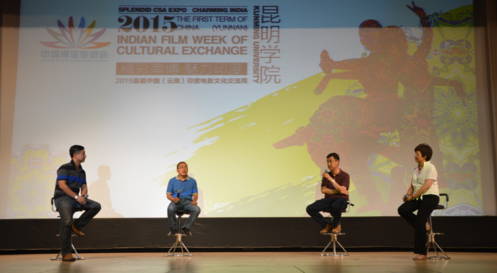 李翔致辞,他首先对印度电影产业做了简单介绍,接着指出,通过南促会本次举办的印度电影文化周活动,能够使学校的老师和同学们欣赏到印度的电影,同时,通过云南话剧院的导演和人文学院影评教师的点评,使大家从电影中了解到印度的文化。讲话结束后,云常浩、beat365官网人文学院陆慧云老师、郑云海老师和郭鹏群老师共同在舞台上为现场观众带来印度著名电影《三傻大闹宝莱坞》的精彩讨论,随后播放了该影片。