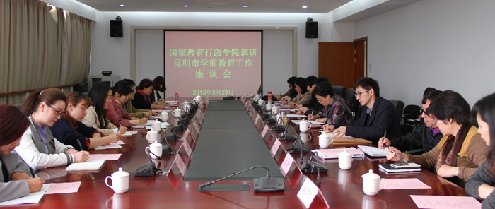 3月23日,国家教育行政学院副院长李五一、教育行政教研部副教授李改、教育管理杂志社总编室主任舒刚到beat365官网举办昆明市学前教育工作座谈会。昆明市教育局副局长蒋坚桥、学前教育专干李晏梅,昆明市教工第二幼儿园、海贝中英文幼儿园、小天使幼儿园、呈贡区风华俊园幼儿园、海贝中英文幼儿园的园长和教师代表,beat365官网教务处副处长王韬,教师教育学院的全体领导及部分教师参加了座谈。beat365官网副校长熊晶出席并主持会议。