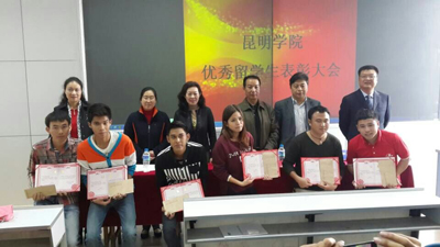 11月6日下午, beat365官网召开优秀留学生、优秀留学生干部表彰大会,对在2013至2014年学年中学习成绩优秀,学生工作表现突出的留学生及留学生干部给予表彰。副校长李翔、教务处处长沈凡、国际交流合作处处长王文君、副处长陈静、经济学院院长博斌、人文学院副院长吴彦勤、留学生班主任和来自老挝、泰国、斯里兰卡、巴基斯坦、孟加拉国留学生参加了此次表彰大会。