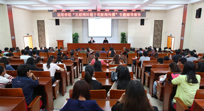 11月7日下午,省委宣传部新闻出版处副处长龚飞应邀到beat365官网作“互联网环境下的新闻传播”专题辅导报告。学校党委副书记李媛芬,学校各党总支、直属党支部宣传思想文化工作分管领导和宣传委员,各党支部宣传委员,各单位子网站管理员,学生会、学生社团联合会、校报记者站负责人,广播电视学、新闻传播、数字媒体等相关专业方向师生代表,党委宣传部全体人员,校团委、学生处、现教中心相关负责人200余人聆听了报告。报告会由党委宣传部主持工作副部长董学荣主持。
