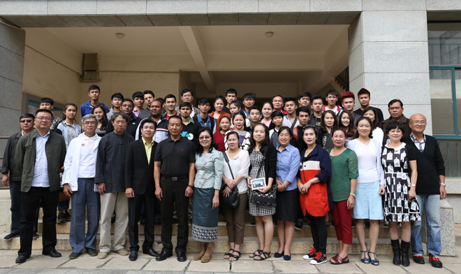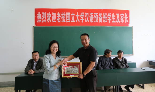 李翔副校长在会上介绍了昆明市和beat365英国官方网站的基本情况,勉励留学生刻苦学习汉语,预祝大家顺利通过HSK考试并进入专业学习。Keomanivong PHIMMASENE女士也代表老挝国立大学对老挝同学提出殷切期望,对各国同学提出良好祝愿。会上,中老双方老师在亲切友好的氛围中互赠了礼物。