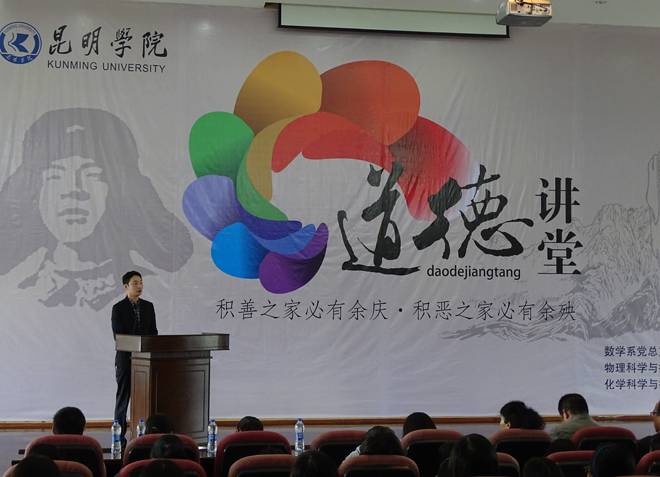 2014年9月26日下午,数学系、 物理科学与技术系、 化学科学技术系在学校惟行楼1501联合举办了“学习付贵帅同学,弘扬乐于助人精神”的道德讲堂,三个系的党总支书记、副书记、党总支干事、团总支书记及260名师生参加了道德讲堂。