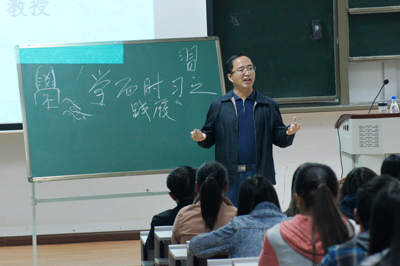 9月25日晚,博识楼1003阶梯教室座无虚席,蒋永文校长为人文学院2014级300余名新生做了一场题为《与大一新生谈学习》的学术讲座。