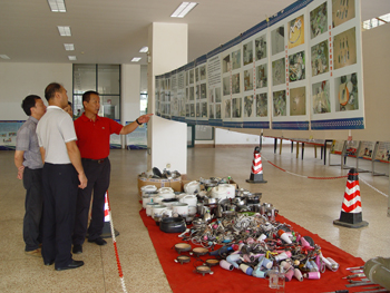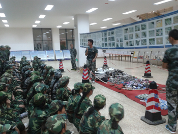 9月12至14日共3天晚上,在军训教官的带领下,2014级全体同学以军训营为单位有序地进入图书馆展览区观看展览。一个个发生在身边的真实案例,一组组几年来在学生宿舍收缴的部分违规物品、管制刀具等实物,一幅幅反映消防安全、防范诈骗、防震减灾、禁毒等内容的系列安全知识宣传展板呈现在同学们眼前,给新同学敲响了安全警钟。同时解说员(学生治安服务队员)以生动的讲解向同学们阐释了校园安全的重要性和掌握校园安全知识的必要性。