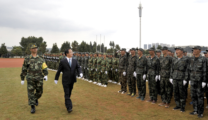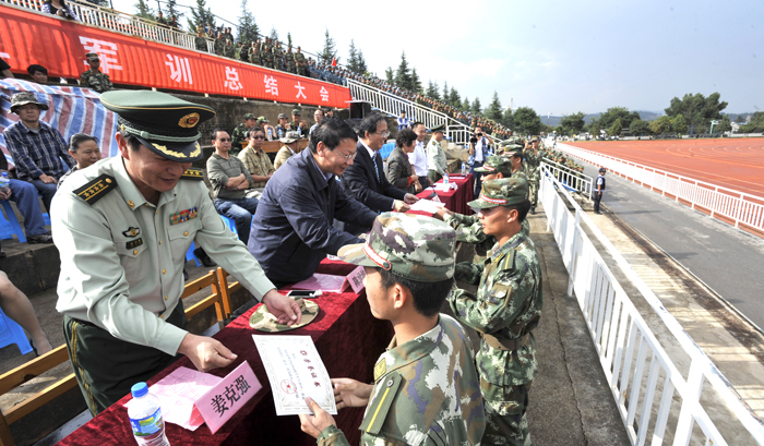 总结大会上,蒋永文校长首先检阅了2014级学生军训团受阅方队。随后,学生军训团的分列式、队列操、擒敌拳、战伤救护、消防演练等科目逐一登场表演。同学们的热情与精彩汇报,突显出同学们的顽强斗志,同学们精彩纷呈的表演和教官们的有序指挥赢得了学校领导、部队首长以及现场同学们的阵阵掌声和好评。